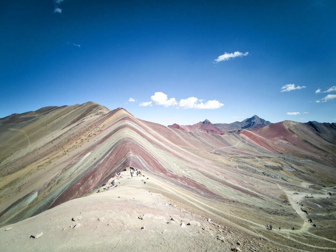 A subida dura entre 1h30 a 2h, dependendo do ritmo. Ao chegar ao cume, o impacto é imediato: o colorido natural da montanha, resultado de milhões de anos de sedimentos minerais, contrasta com o céu andino criando uma cena mágica e poderosa.